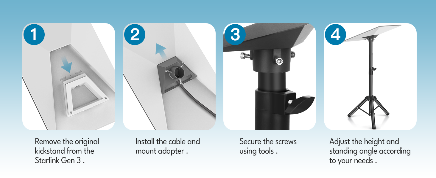 - Durable Construction for Star link Gen 3 mout: Made from strong steel tubing, the upper shaft of the stand measures 1.4 inches (35mm) in diameter, providing reliable strength and support. For Star link Gen 3 Mount